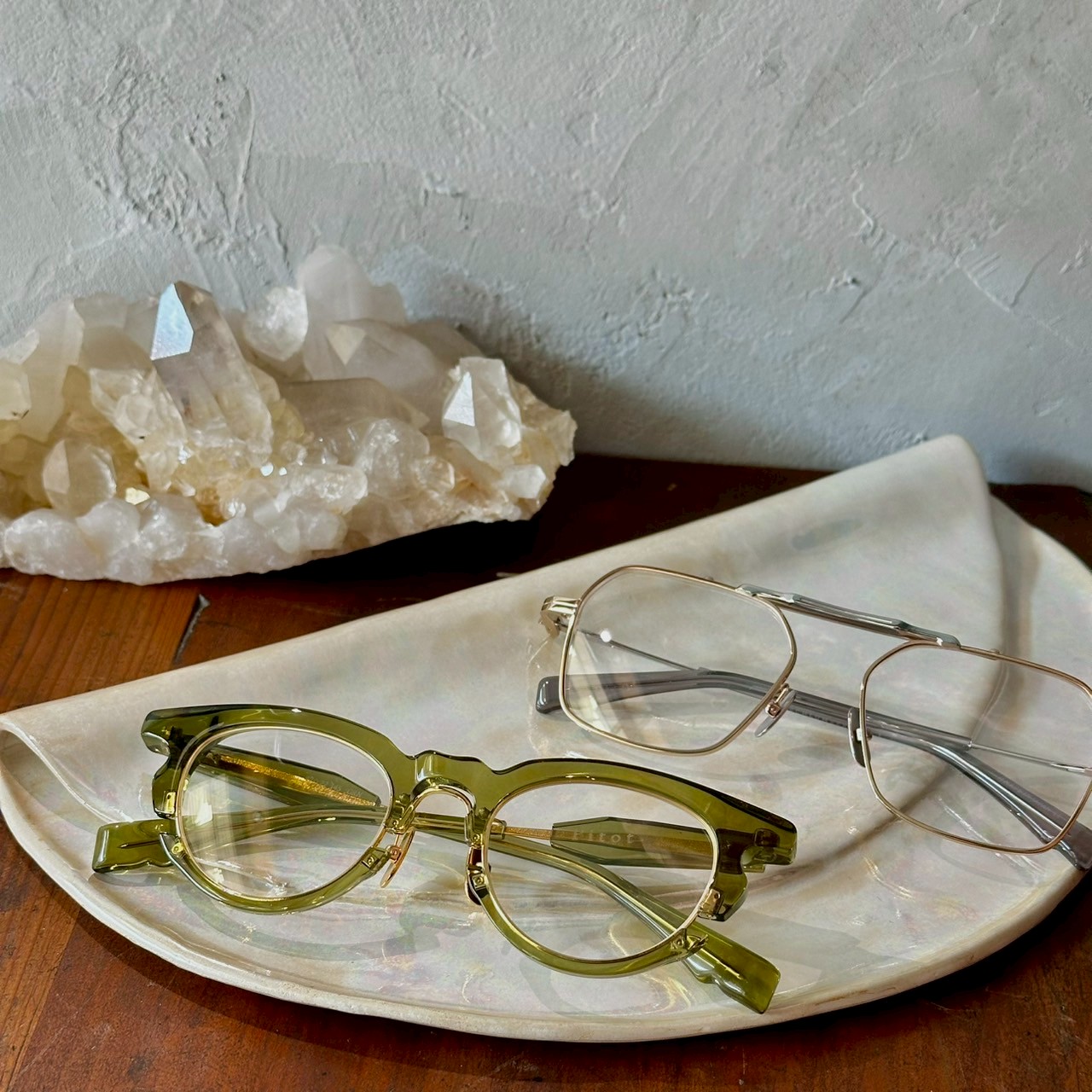 たとえば、丸みを帯びたフレームにアースカラーを合わせれば柔らかく穏やかな印象に。逆に、エッジの立った造形にクリアなレンズを選べば、凛とした知的さや強さが際立つ。