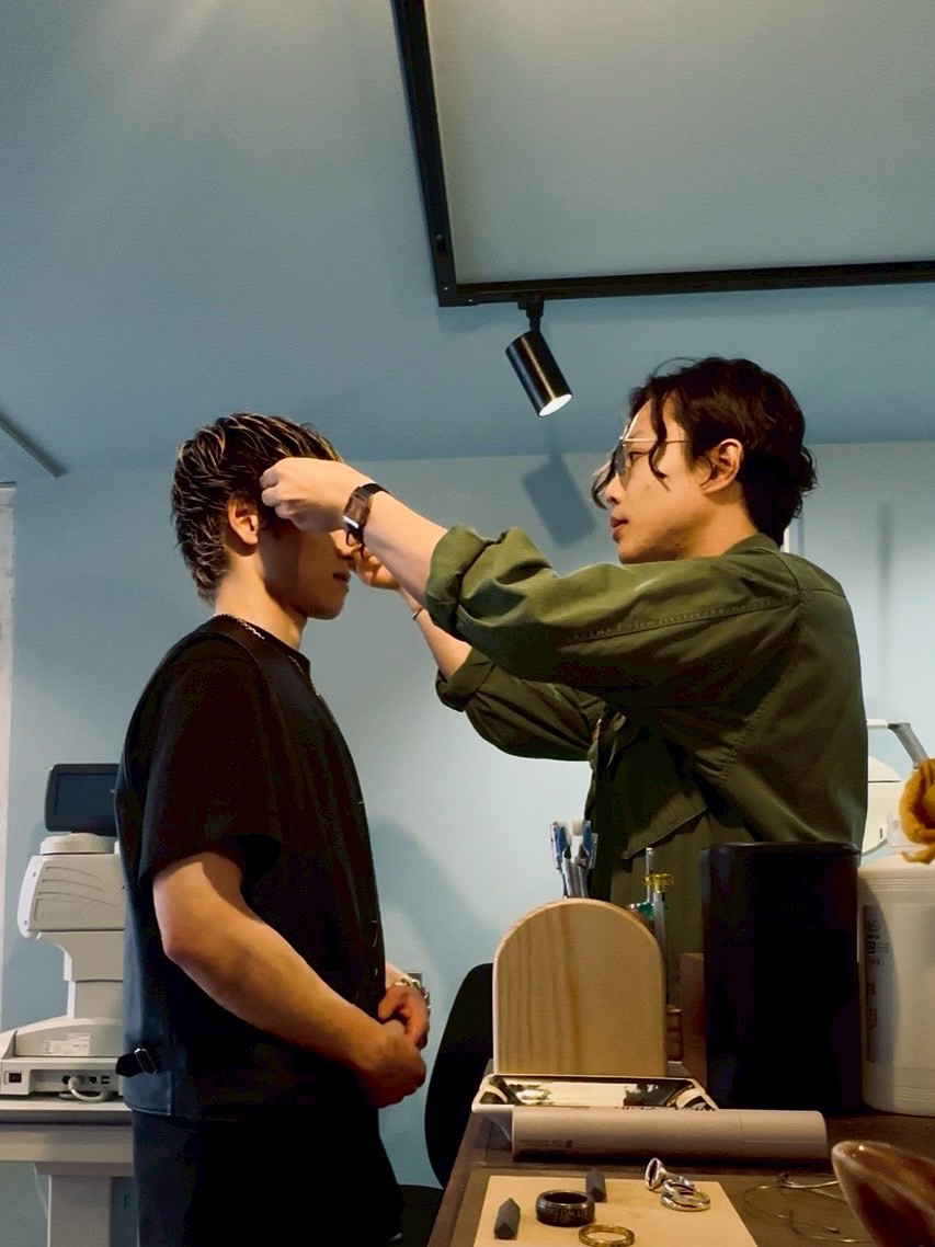 掛け心地は、気分に直結するデザイン。僕が大切にしているのは、ただ「似合う」を探すことではなく、掛けた人の心まで変える一本を一緒に見つけることなんです。
