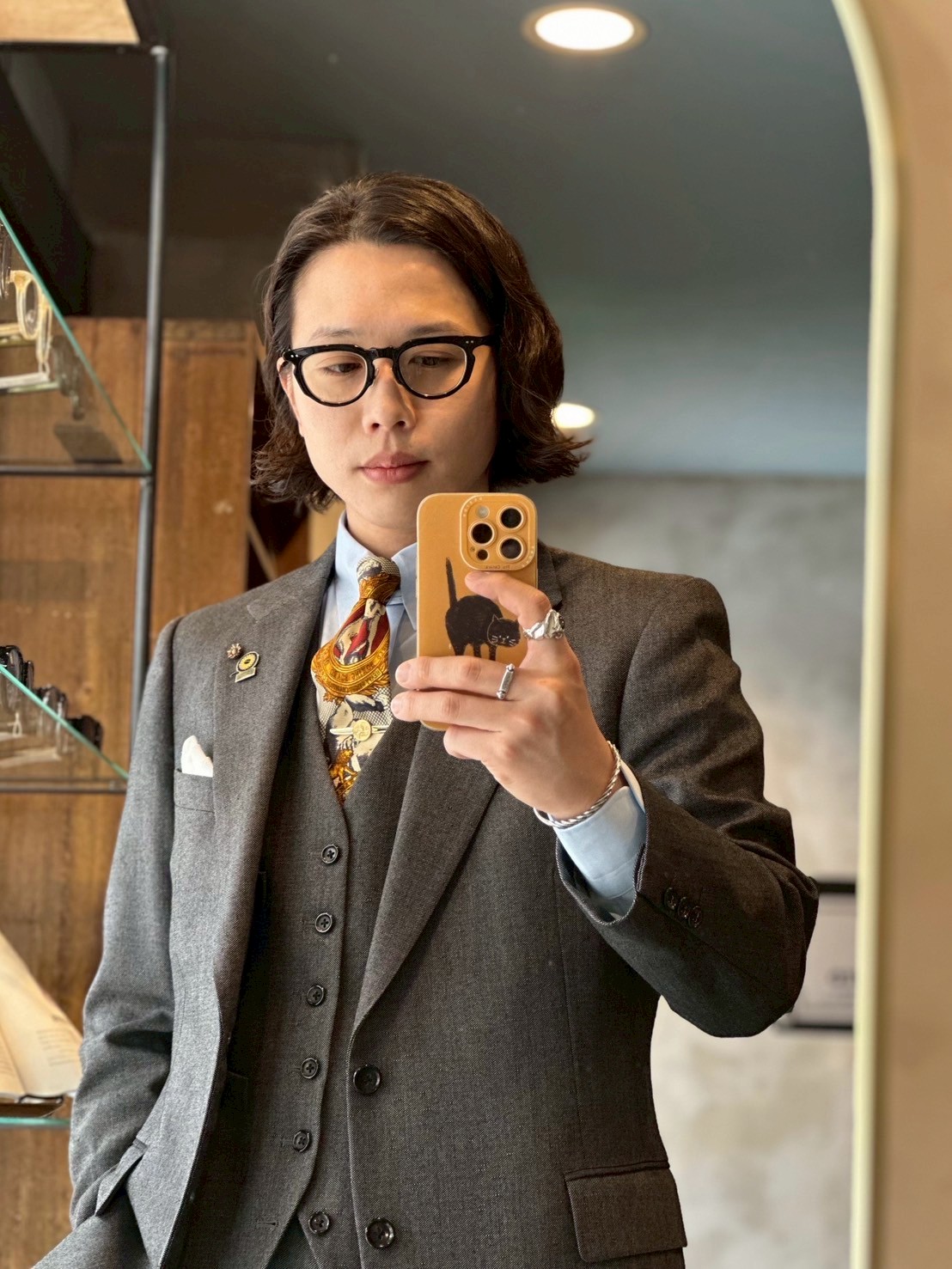 僕はその方に、あえて“絶対に自分では選ばない一本”をそっと差し出しました。恐る恐る掛けた瞬間、鏡の前でその方の表情がふっと変わったんです。